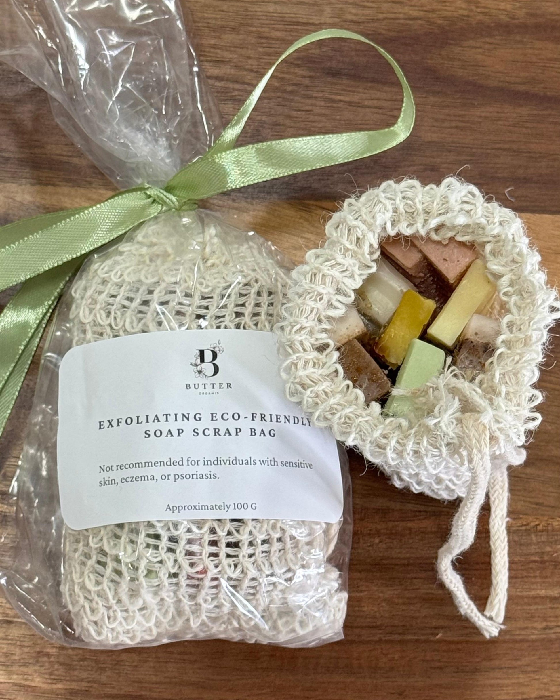 These exfoliating soap scrap bags contain a bunch of random soap cuts.